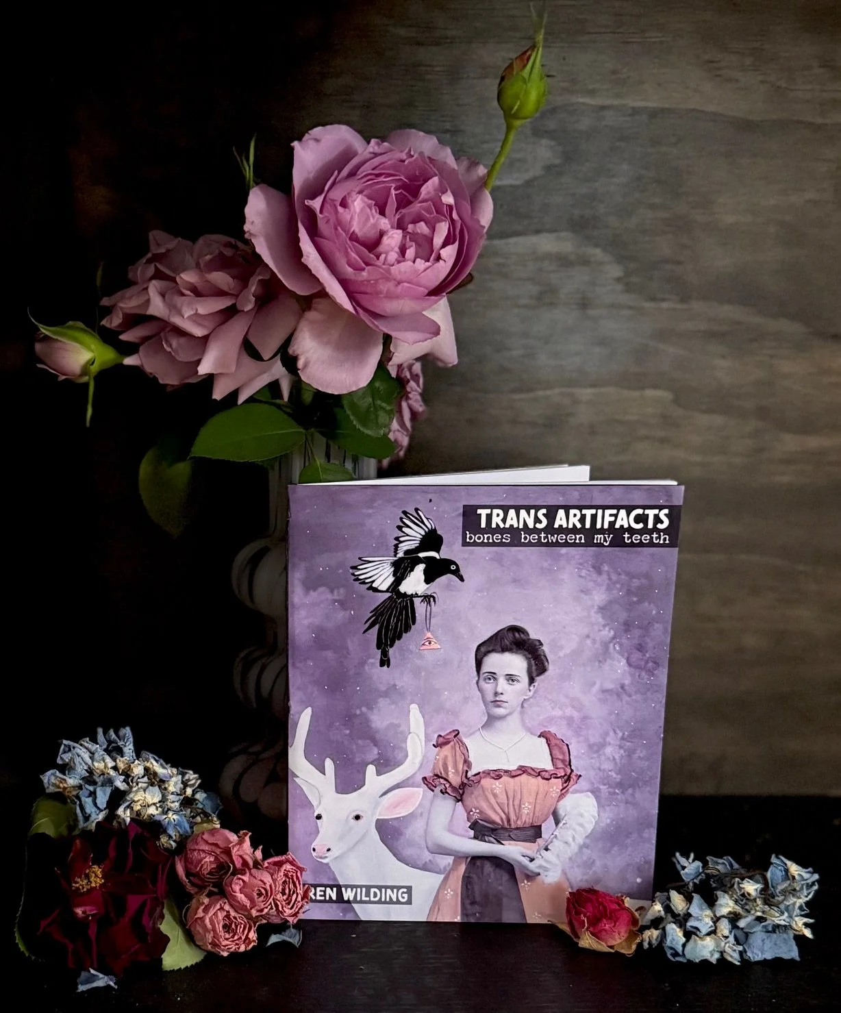 At its core, Trans Artifacts: Bones Between My Teeth by Ren Wilding traces the experience of a trans speaker coming into being, not as a clean emergence, but as a haunted one. In the very first poem, they say: “I’m trying to give myself / a warning / that my body / will be haunted / by what it sheds” as a recognition that transition is not erasure, but layering. The poems refuse the simplicity of a before & after, instead dwelling in the tension between the perceived self & the lived self, between what was imposed & what is claimed.