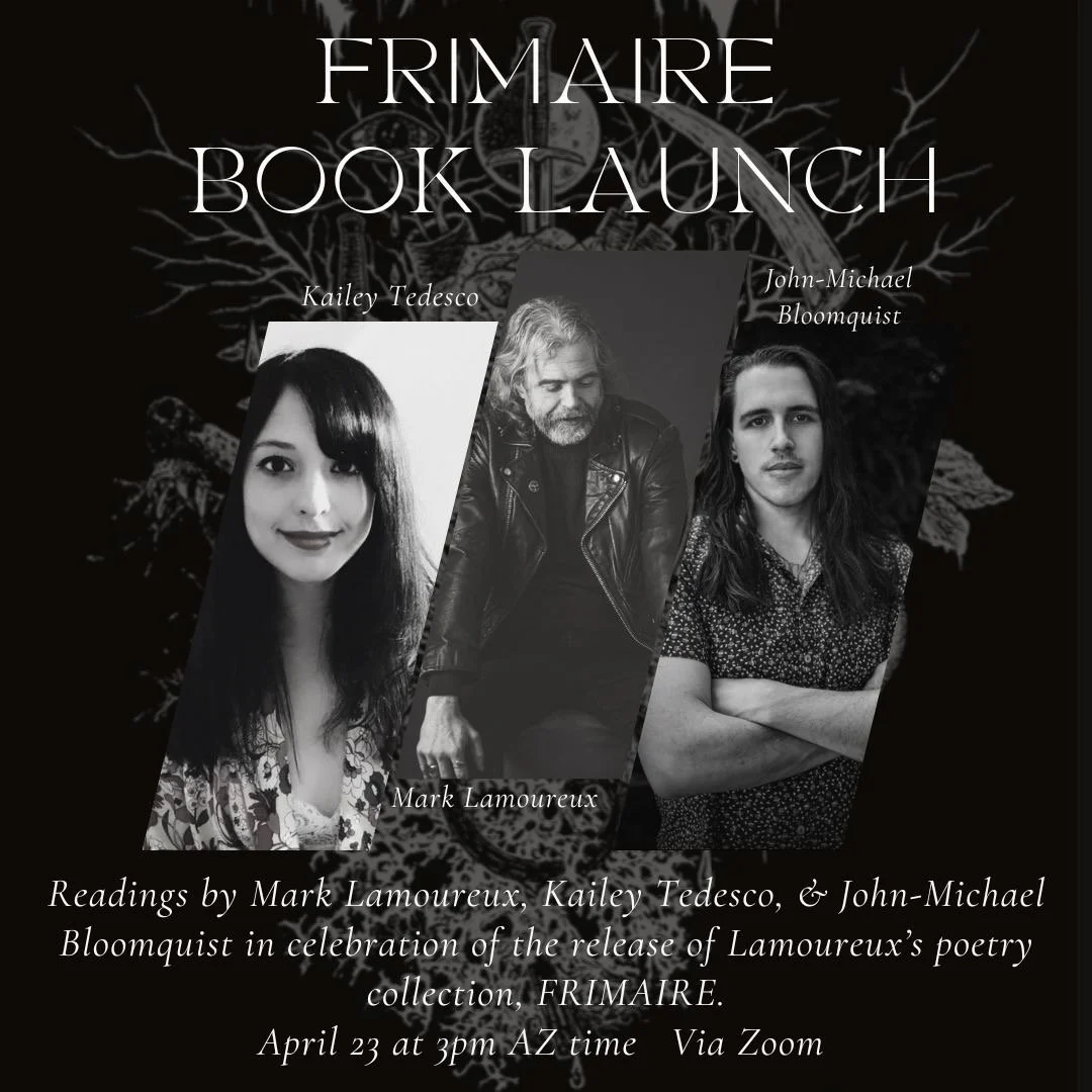 Join us for the virtual celebration of the launch of Frimaire by Mark Lamoureux with readings from Mark Lamoureux, Kailey Tedesco (Lizzie, Speak & Foreverhaus), & John-Michael Bloomquist (Rocket Celestial).